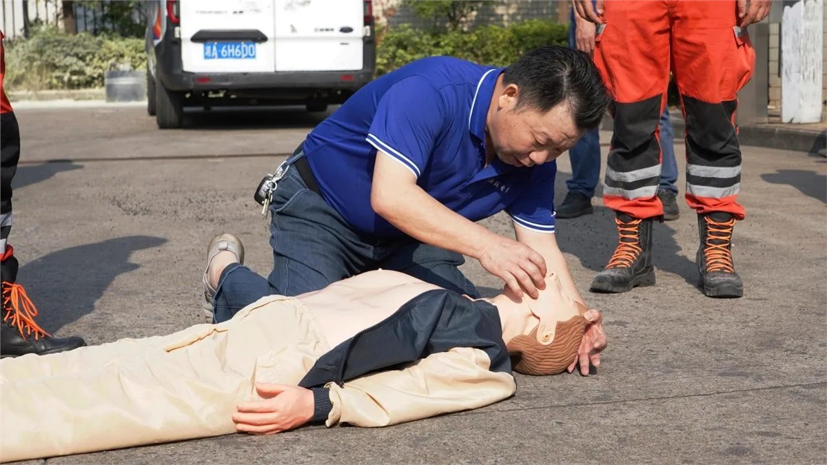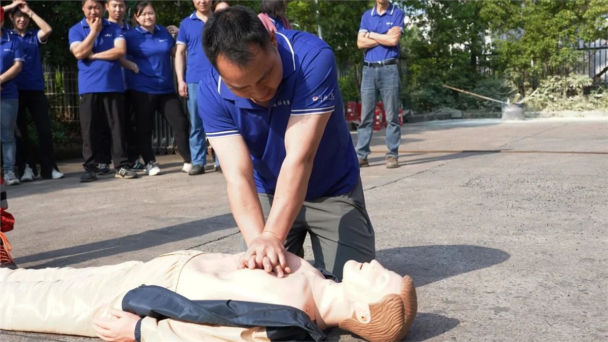隨后,在現場設置的模擬“起火點”,大家有序排隊進行了滅火器實操演練,以確保每位員工都能正確掌握滅火器的使用方法。同時,現場也模擬了心肺復蘇(CPR)急救和有限空間作業應急救援等場景,完整呈現了“火災發生—緊急疏散—現場救援—120轉運”的全流程,整個實操演練過程組織嚴密、分工明確,達到了既定的演練目標和成效。
