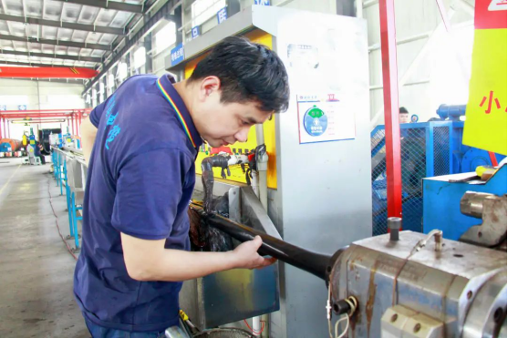 與其他組裝式的產(chǎn)品不同,后期檢查出現(xiàn)質(zhì)量問題,可以拆開重裝或更換零件,電纜的生產(chǎn)制造任何一個部件或工藝工序沒有達標,后期是無法挽回和彌補的。因此,電纜生產(chǎn)線上的每一個操作者都是關鍵人物。作為機組組長的劉學文,深知自己肩上的重任,一旦進入車間,他便絲毫不敢懈怠,總是在生產(chǎn)線之間來回走動,反復查看機器設備的運轉(zhuǎn)情況、第一時間查看電纜成品質(zhì)量,快速發(fā)現(xiàn)問題,解決問題,避免不良品流入下一道工序,不僅保障了電纜質(zhì)量,而且有效提高了電纜的生產(chǎn)效率。