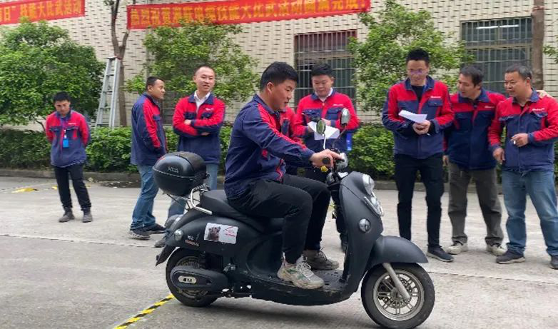 安全問題貫徹生產與生活,此次技能比武不僅包含貨物運輸的重要交通工具—叉車比試,還包含汽車與電摩車兩項安全技能的比試。比賽現場,參賽選手們沉著冷靜、動作敏捷,熟練的倒車、轉彎、平穩而又快速的完成賽事規定路線、倒車入庫、貨物運動等項目,展示了良好的基本功和嫻熟的操作技巧,贏得現場觀眾的連連喝彩。