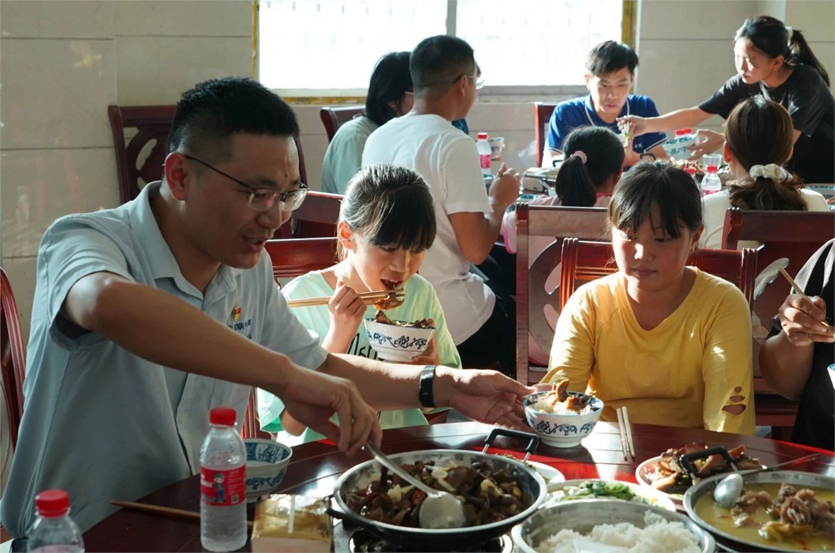 助學不僅是物質(zhì)上的援助,更重要的是對孩子們精神上的激勵與引導。為了拉近與受助學生的情感距離,在瀏陽經(jīng)開區(qū)駐苗兒灘幫扶工作隊和苗兒灘政府的協(xié)調(diào)幫助下,8月22日傍晚,湘聯(lián)電纜“芯”光助學基金會邀請受助孩子和其家長們來到苗兒灘政府,通過一起吃晚餐和開展座談會的形式,與受助學生面對面交流,了解他們的學習和生活情況,并鼓勵學生們要立志向上,好好學習,砥礪成才。