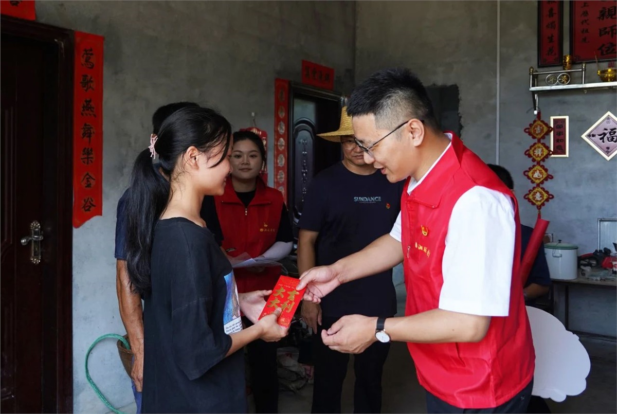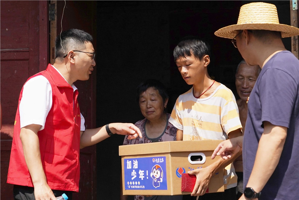8月23日,在當?shù)仡I(lǐng)導干部的陪同與幫助下,湘聯(lián)電纜“芯”光助學基金會的志愿者們對苗兒灘鎮(zhèn)的6個村,8個家庭進行了實地走訪,并將“芯”光助學基金和加油大禮盒送到了孩子們手中。
