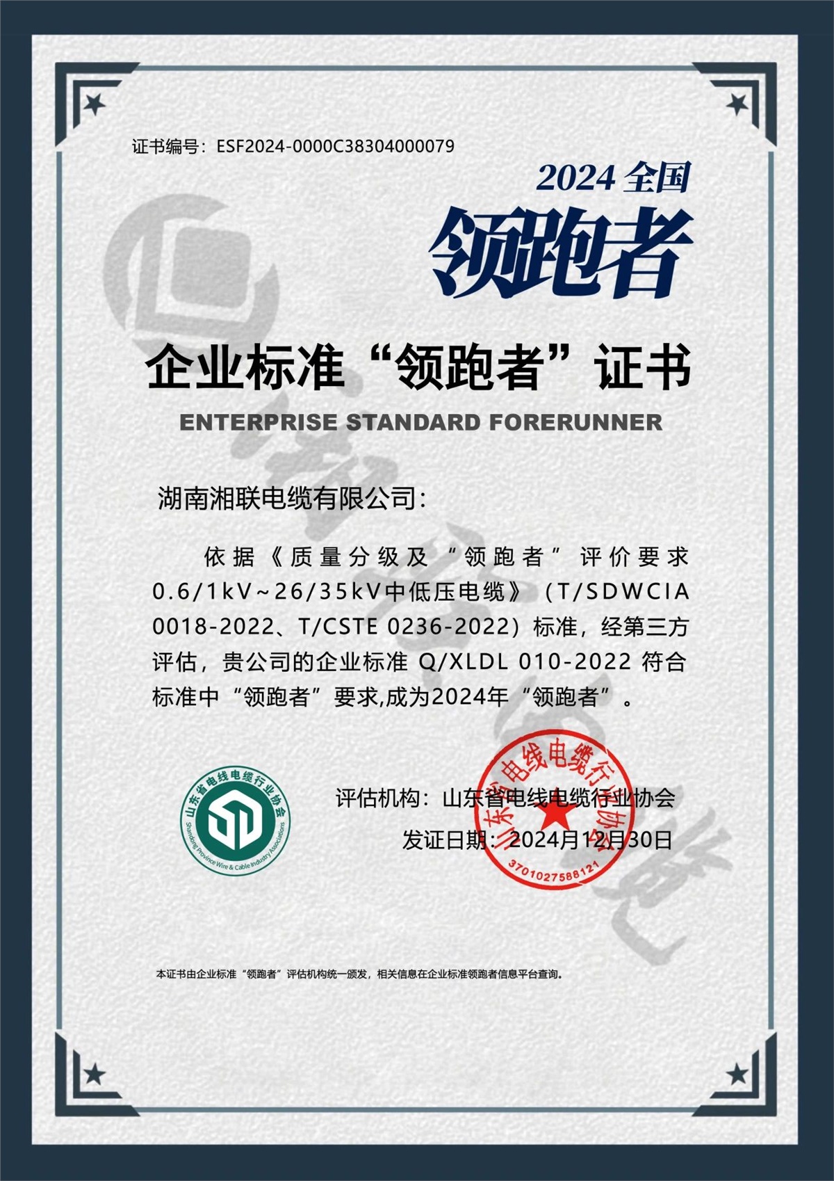 持續領跑 卓越品質|湘聯電纜再獲企業標準“領跑者”