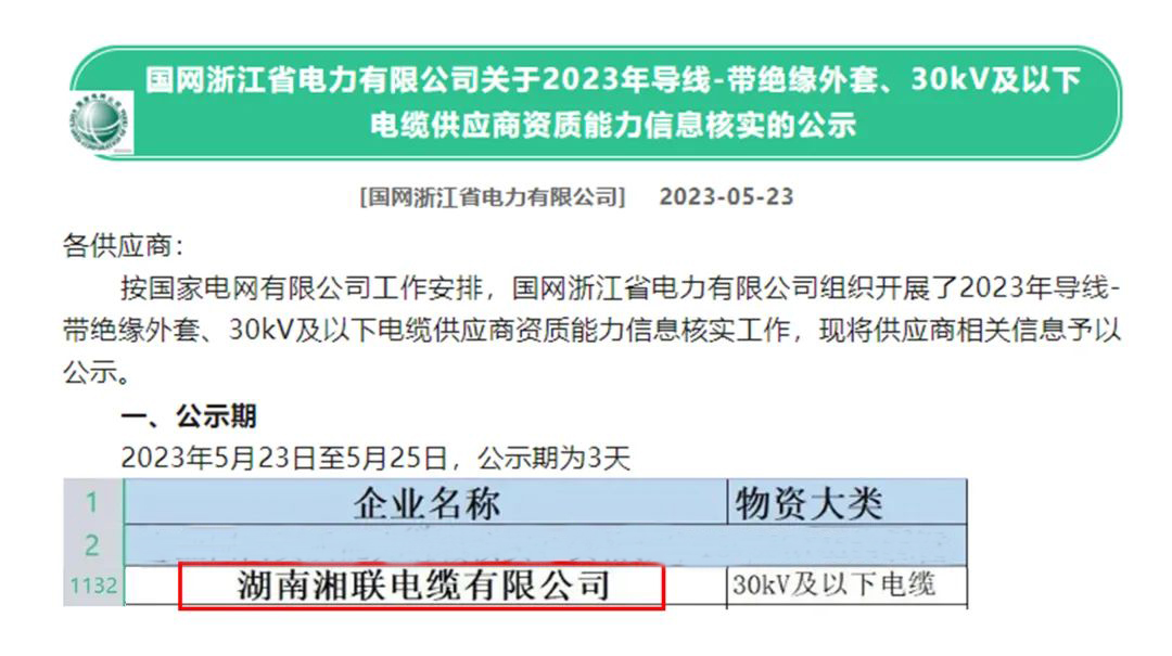 5月,憑借出色的產品品質、優質的服務和良好的聲譽,湘聯電纜通過了審查,成為2023年國網供應商。