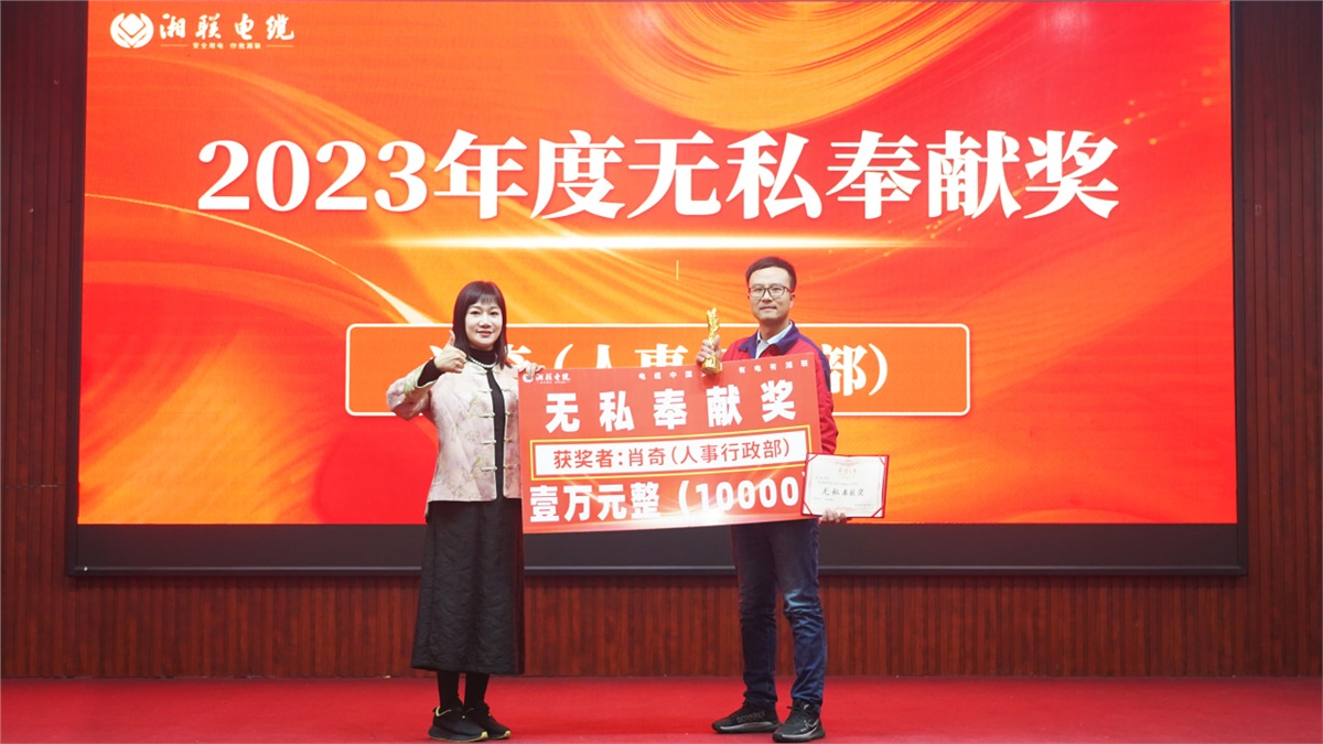 學先進應爭當先進,趕先進才能先進輩出。公司的發(fā)展離不開每一位恪盡職守、辛勤付出的優(yōu)秀湘聯(lián)人,在盛會上,對2023年度表現(xiàn)優(yōu)異的個人和團隊進行了一一表彰頒獎,頒發(fā)獎項包含主人翁精神獎、卓越功勛獎、無私奉獻獎等十二個獎項,獎品包含商品房、現(xiàn)金、榮譽證書、獎杯,激勵全體員工以先進為榜樣,向優(yōu)秀靠近,2024年再創(chuàng)佳績。