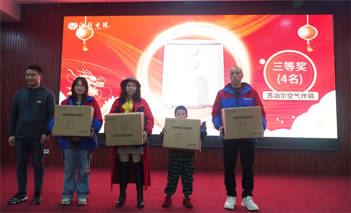 本次盛會還穿插了多輪抽獎活動,獎品包含ipad電腦、蒸氣炸鍋、破壁機等實用物品,吸引了廣大職工的關注,抽獎活動帶來的緊張和興奮感也感染著每一個人,歡呼聲和掌聲此起彼伏,現(xiàn)場其樂融融,熱鬧非凡。