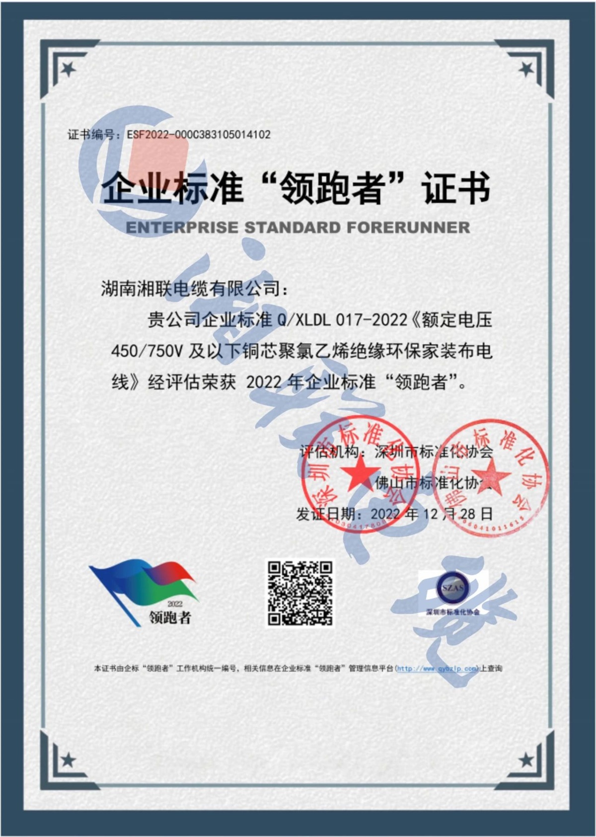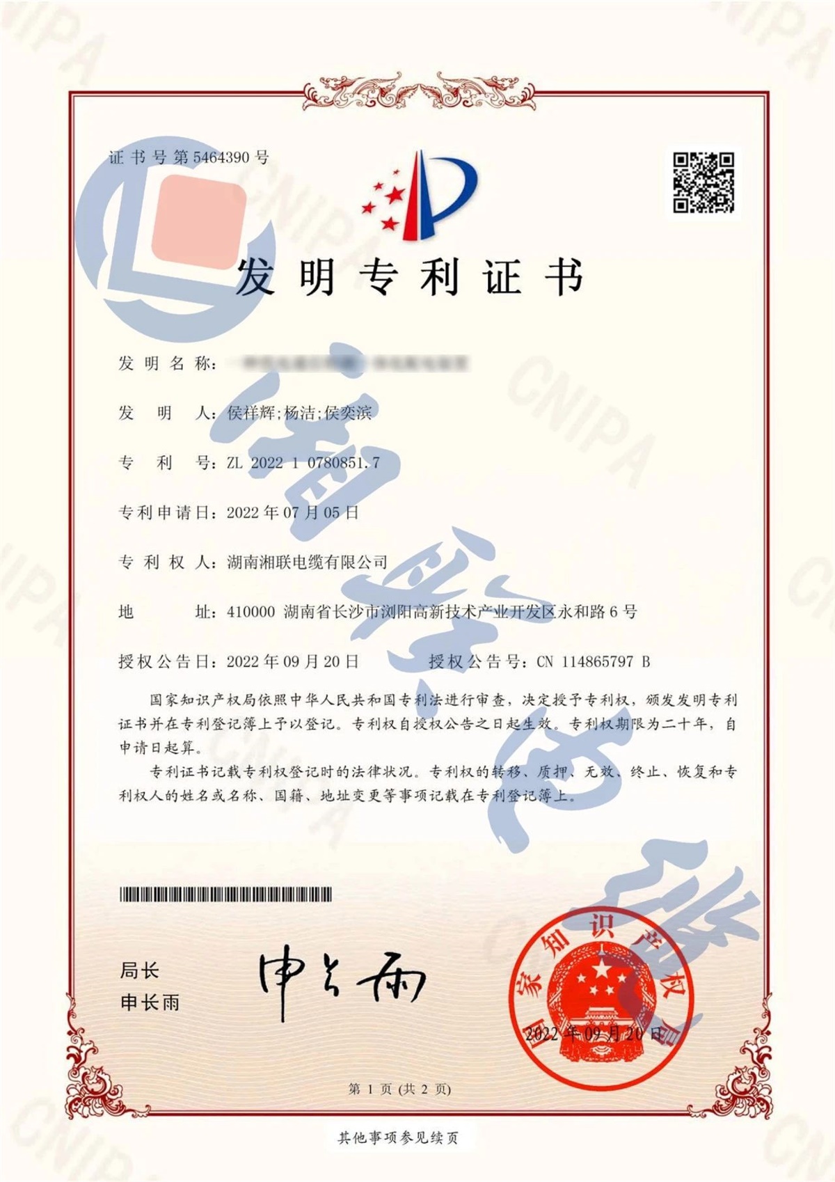 自湘聯電纜成立以來,公司研發了一系列具有自主產權的專利,累計申請專利50余項,多次參與編寫國家標準和團體標準,多款產品企業標準獲評國家“企業標準領跑者”稱號,企業的技術實力和核心競爭力不斷提升。2023年,公司被評為“湖南省省級企業技術中心”。