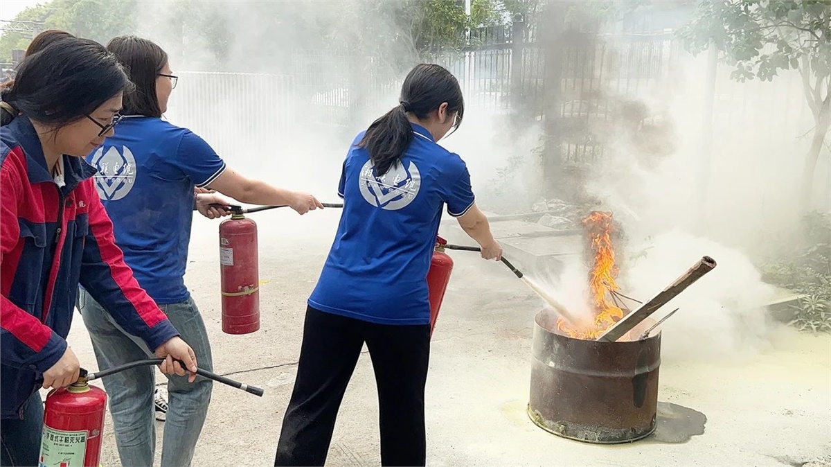 隨后,消防教員結合講解和演示的方法,向大家詳細講解干粉滅火器的使用方法和注意事項,讓大家迅速掌握滅火器的提瓶、拔銷、站位、噴射四大要領,同時,大家通過滅火器操作實踐將學習到的理論知識轉化為實踐經驗,進一步提高所有員工應對火災的能力。