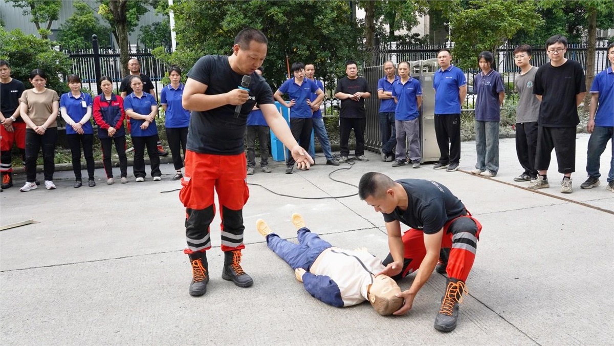為了應對生產過程中可能發生的觸電、漏電等意外傷害事故,本次消防演練還安排了觸電應急演練,消防教員從截斷電源、脫離電源、心肺復蘇急救三個方面為大家培訓了科學有效的應對方法,實用性強,真正提升了大家對觸電等事故的應急能力